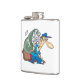 The flask itself is fine. It’s a cheap flask, obviously bought in bulk, however am prepared to overlook that. Given that it is a personalized item, I would have liked to have seen gift boxing instead of the generic packaging. Terrible printing, and/or quality. It’s a cheap, tacky vinyl. It is not cut straight and is also applied in a way that it is overhanging the bottom, causing the glue to catch on items and it will eventually roll and tear, damaging the wrap.