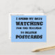 I Spend My Days Watching for the Mailman to Deliver Postcards. Back wishes many wonderful postcards for the receiver of the card.