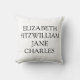 Pillow featuring the first names of the major characters from Pride and Prejudice by Jane Austen: Elizabeth, Fitzwilliam, Jane, Charles. A great pillow to have in your own home library. Perfect for book lovers and fans of Jane Austen.
