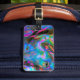 I was happy with the acrylic tag but it came with a thin leather strap to attach the tag to luggage (like a cat collar). I replaced the strap with a metal ring off of a key ring as the leather strap would come undone or break easily as luggage is sometimes handled without much care by airlines. Printing is great. Colours and positioning of the design I put on the tag were perfect. Very pleased.
