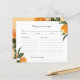 Main Squeeze Elegant Bridal Shower Recipe Card