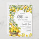 Celebrate your little one with this fresh and charming Main Squeeze Lemon Baby Shower Invitation. Featuring a beautifully hand-painted basket of lemons, lush green leaves, and delicate white blossoms, this invitation is perfect for a lemon citrus-inspired baby shower. Invite your guests to a bright and joyful celebration with this fresh and stylish baby shower invitation. BBS995