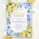 Main Squeeze Lemon Blue Tile Floral Bridal Shower Invitation featuring vibrant Italian-inspired blue tile patterns, fresh lemons, and elegant floral accents. Perfect for a lemon bridal shower, lemon and blue bridal shower theme, or Italian themed bridal shower with bright summer charm.