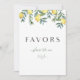 Main squeeze lemon bridal shower small favours sign. Sign reads "FAVORS please take one thank you" with botanical lemon watercolor accents