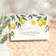 A thank-you card to match our "She's Found Her Main Squeeze Lemon Bridal Shower" invitations. View the collection linked on this page for coordinating items. This design features a hand-painted arrangement of lemons, blossom, and greenery around the top of this card. Inside, there is a custom thank-you message.