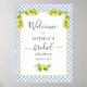 Amalfi style Citrus theme bridal shower Welcome sign perfect for spring or summer bridal shower. Design features elegant watercolor lemons with blue and white tile border. Matching envelope liner available. (vintage lemon wedding collection) Please message me if you need other matching items.