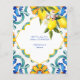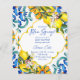 Main squeeze lemons baby shower budget invitation template, Mediterranean Majolica tiles lemons baby shower invitation template, Italian style Capri, Amalfi Coast, Sicilia themed party invitations for summer functions.