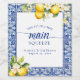 This bridal shower design features a bright blue theme with citrus.