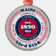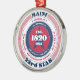 Show your state pride this holiday season with this unique Christmas ornament dedicated to Maine, the 23rd state. It has red, white, and blue patriotic colours with a circular typography design on a white background. The text includes facts about the state, such as its name, capital, state abbreviation, region, time zone, geographic coordinates, the year of its statehood, and its resident's name. It's a great gift for those who wish to celebrate their state or for those who are feeling nostalgic about their home state.