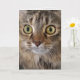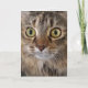 Extreme close up of a Maine Coon cat face with big eyes for birthday humor.