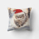 Fluffy Maine Coon dashing through the snow with a Santa Claus hat.