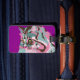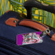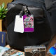 Acrylic luggage tag with original design by artist Rachel Victoria.