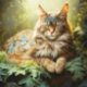 Introducing "Maine Coon with Feathers in Forest," an exquisite collection of apparel, puzzles, and quality products that seamlessly blends aesthetic and thematic elements. Picture a large brown cat with feathers, majestically lounging on green leaves—a feline immersed in a whimsical painting for lovers of animals and fantasy, embodying the essence of a beautiful feathered beast.