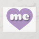 This postcard features a shapely and vibrant lavender heart containing the bold, white, rounded lower case letters me, a playful abbreviation for Maine, the pine tree state. The reverse side of the postcard is blank, awaiting your handwritten sentiments or customised text.