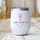 Impress your destination wedding guests with these coastal chic personalised wine tumblers. Design features a lobster outline illustration in red with your wedding destination beneath (shown with Bar Harbour, Maine) in classic serif lettering. Add your names beneath in handwritten cursive script, as well as the year. Colours can be changed to match your wedding colours using Zazzle's design tool.
