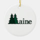 Maine is known as the Pine Tree State. This design uses two pine trees, a common site in Maine, to form the M.