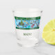 Digital design made with original paintings of symbols and elements celebrating the state of Maine with text. I plan for this to be the first in a series of all 50 states. Go to: www.statelymandalas.com to view an animated video of the design. I originally created this as a mandala, but have created this version to make individual elements more visible on the shot glass.