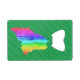 This is a pretty neat bottle opener. It's the size of a credit card, although a bit heavier. It's a very pretty way to show how you feel about things. I love Maine and I believe in gender equity. It's a colorful little item. It would be hard to lose on a beach!
