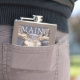 The flask itself is fine. It’s a cheap flask, obviously bought in bulk, however am prepared to overlook that. Given that it is a personalized item, I would have liked to have seen gift boxing instead of the generic packaging. Terrible printing, and/or quality. It’s a cheap, tacky vinyl. It is not cut straight and is also applied in a way that it is overhanging the bottom, causing the glue to catch on items and it will eventually roll and tear, damaging the wrap.