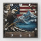 Majestic Bald Eagle Perched by Mountains and Flag Square Wall Clock
