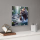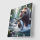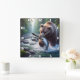 large bear is depicted in a painted art piece, holding a fresh fish firmly in its mouth. The bears powerful presence and natural hunting instincts are portrayed vividly in the artwork.