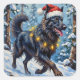 Majestic Belgian Shepherd Snow Forest Christmas Square Sticker