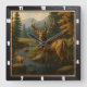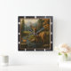 This square wall clock showcases a serene forest scene with a majestic buck standing in a flowing stream, accompanied by two fawns. The rich autumn colours of the trees and distant mountains create a tranquil and picturesque setting. Perfect for nature lovers, hunters, or anyone seeking a peaceful wildlife accent for their home.