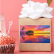 This photo features colourful clouds at sunset with a reflection, Wailea Beach with palm trees, Maui, Hawaii.