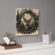 This square wall clock features a striking image of a majestic deer's head framed within a rifle scope's crosshairs, set against a backdrop of towering pine trees. The sepia-toned artwork evokes a classic hunting aesthetic, making it an ideal piece for hunting enthusiasts, lodge decor, or anyone who appreciates the wilderness.