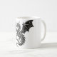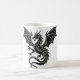 This striking black-and-white illustration showcases a powerful dragon, complete with intricately designed wings and a fierce expression. The bold lines and detailed patterns create a sense of strength and mystique, making it a captivating piece for fantasy enthusiasts. Perfect for those who appreciate mythical creatures, this artwork adds an element of adventure and imagination to any space.