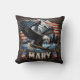 A powerful eagle soars above a serene water body, framed by mountains and trees, embodying strength and freedom against a patriotic backdrop.