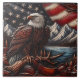 Majestic Eagle Overlooking Mountains and Flag Ceramic Tile