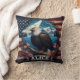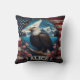 Majestic Eagle Overlooking Mountains and Flag Cushion