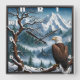 Majestic Eagle Perched in Snowy Mountain Landscape Square Wall Clock