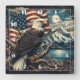 Majestic Eagle Perched Near Mountains and Flag Square Wall Clock