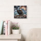 Majestic Eagle Perched on a Branch With Flag Square Wall Clock