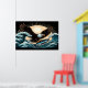 Majestic Eagle Soaring Over Ocean Wave With Fish Poster