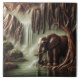 Majestic Elephant by Serene Waterfall at Dusk Ceramic Tile