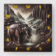 Majestic Elephant Drinking by Serene Waterfall Square Wall Clock