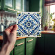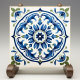 The Majestic Floral Medallion Ceramic Print Tile is a celebration of ornate floral design, blending traditional aesthetics with a modern twist. The central medallion is a kaleidoscope of lush blues and greens, forming a stunning floral pattern that exudes elegance and serenity. This design is a print of an original, intricately detailed tile, offering a smooth, flat surface that mimics the look of hand-painted ceramics. It's perfect for those seeking to bring the charm of Mediterranean or Portuguese tilework into their home without the weight or installation complexity of actual ceramic tiles.
