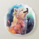 This pillow is decorated with a stunningly beautiful drawing of a white and colourful wolf. The wolf is standing, head held high, looking forward and howling into the wind. It has thick, silky fur in shades of red, orange, and yellow.