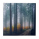 Majestic, emotive photograph of a narrow path winding through a misty forest in the early morning sun.