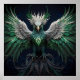 Majestic Green & White Phoenix Bird Poster