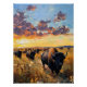 This captivating artwork depicts a powerful herd of buffalo traversing the vast prairie under a dramatic, colorful sky. Rendered in a bold heavy oil palette style, the piece evokes the untamed spirit of the American plains, blending texture and vivid hues to create a sense of movement and freedom.