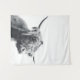 Portrait photograph of a majestic orange brown highland cattle on a foggy day processed in black and white.