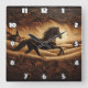 Majestic Horse Galloping Through Golden Field Square Wall Clock