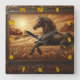 Majestic Horse Galloping Through Golden Fields Square Wall Clock