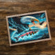 A regal eagle swoops down, its sharp talons gripping a shimmering fish in mid-air. The powerful bird showcases its hunting prowess in this dynamic painting.