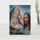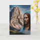 A stunning statue of Jesus stands tall in front of a majestic mountain, embodying strength and serenity. THE LORD IS MY ROCK