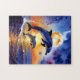 Bring the magic of the ocean to your table with this vibrant jigsaw puzzle featuring two playful dolphins leaping from glowing sunset waves beneath a luminous full moon. Rich shades of blue, purple, and gold create a dreamy seascape, with sparkling water and dynamic splashes that make every piece exciting to place. Perfect for dolphin lovers, ocean fans, and families who enjoy colorful, relaxing puzzles that double as display-worthy art when completed.